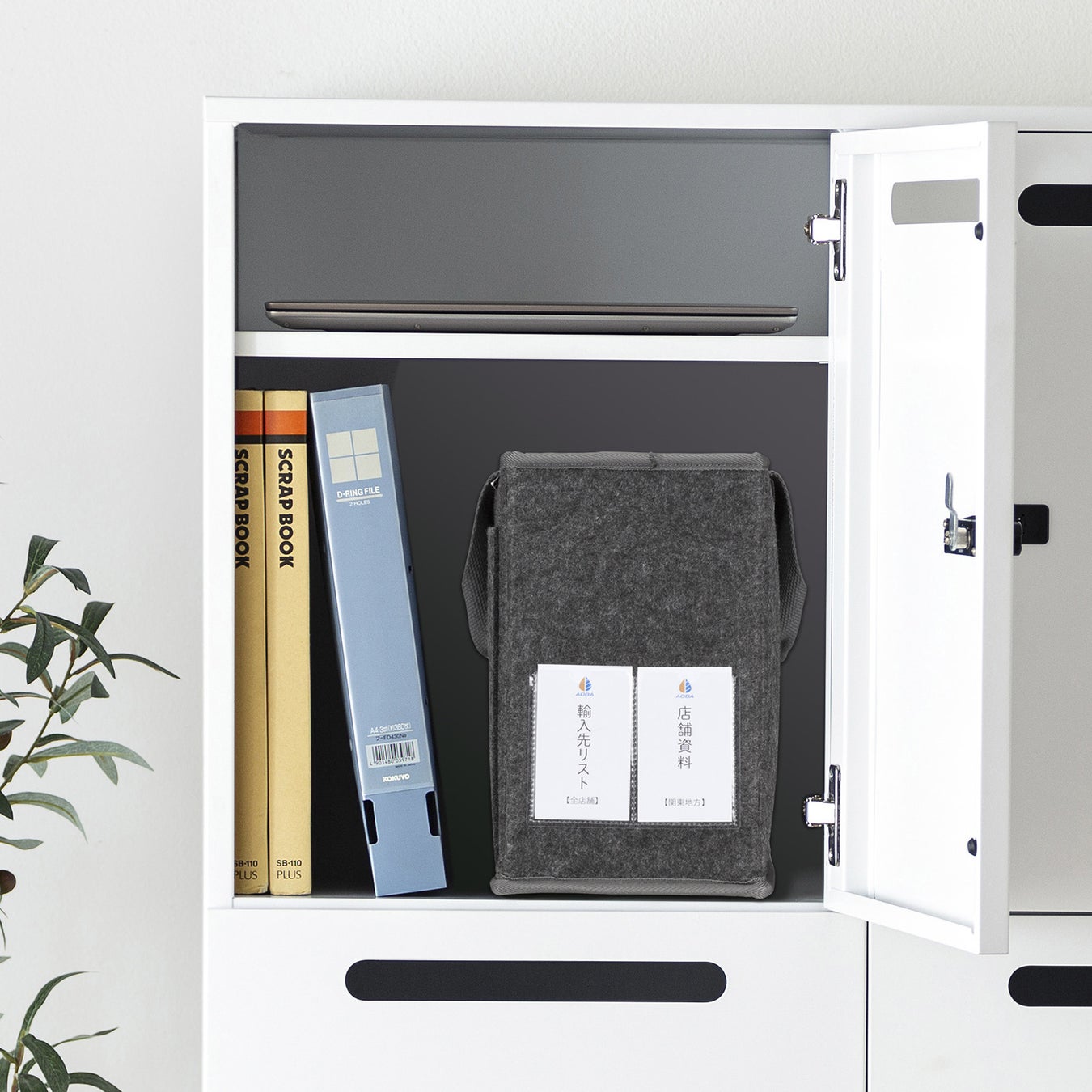中身が見やすく出し入れしやすい、フタなしタイプのボックス型バッグです。収納したA4ファイルやノートパソコン(15.6インチワイドまで対応)、デスク周りのワークツールをさっと取り出すことができます。