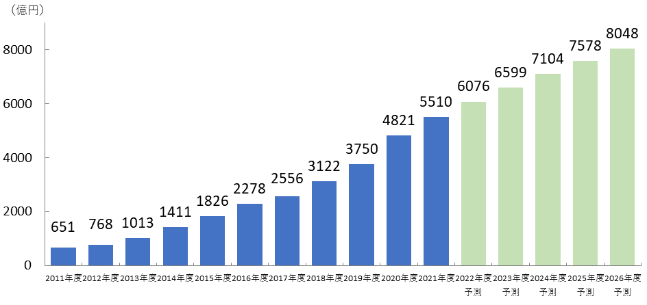 今後、2026年度には8000億円の市場に成長すると予測されます。