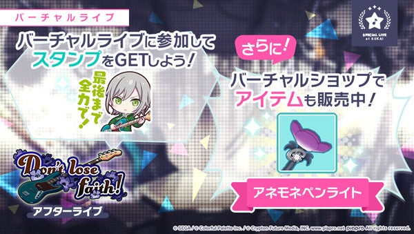 また、「Don’t lose faith! アフターライブ」の開催に先立ち、8月31日(水)からバーチャルショップにて、ペンライト「アネモネペンライト」を販売中です。
