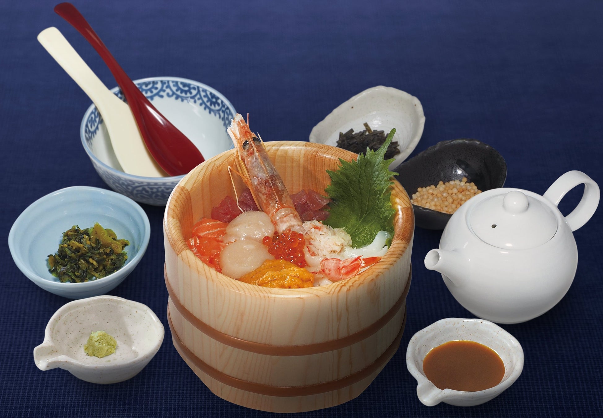 『おひつごはん四六時中』は、北海道産昆布と枕崎産鰹節の旨味が凝縮された特製だしを、先ずは「食前だし」でほっと一息できる瞬間を体験していただき、海鮮を中心とした「おひつごはん」を最後締めのだし茶漬けとして愉しめる、ごはんとおだしを味わうお店です。また豊富なトッピングを取り揃え、おひつごはんを自分好みにアレンジしても愉しめます。