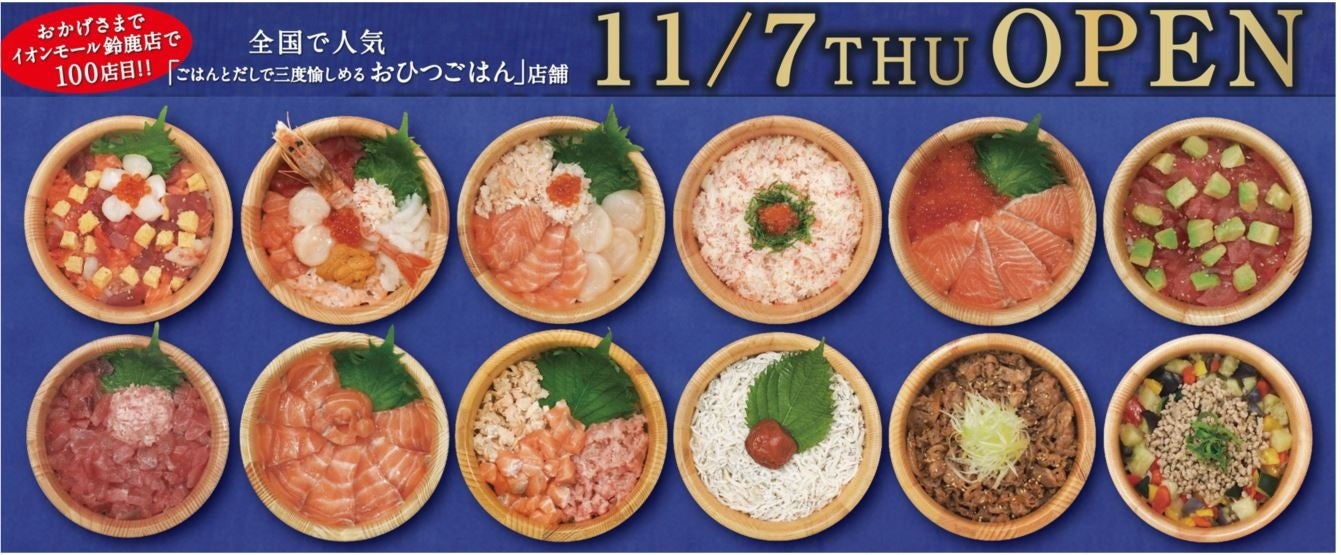 当社は、近年の急速な市場変化に対応するためレストラン事業を再編し、主力業態の『おひつごはん四六時中』の集約を積極的に行ってまいりました。この度、おかげさまで100店舗目となる『おひつごはん四六時中』をイオンモール鈴鹿に11月7日(木)新規オープンいたします。