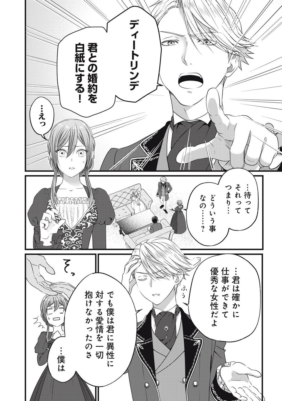 婚約破棄され中年オヤジの後妻にさせられそうになっていた、ディートリンデ。そんな彼女に契約結婚を申し出たのは、子どもの頃に喧嘩別れしたっきりだったバルタザール。ディートリンデが不幸のどん底から立ち上がり幸せになっていく姿を、三条尚先生が表情豊かに描いてくださいました。ディートリンデとバルタザールの契約結婚がどうなるのか、是非楽しんでください。