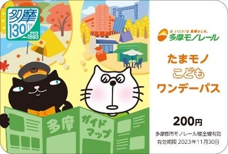※「たまモノこどもワンデーパス」は、200円で多摩モノレール全線を1日自由に乗り降りできる小学生用の乗車券です。通常の小児一日乗車券450円と比較し、250円お得な乗車券です。