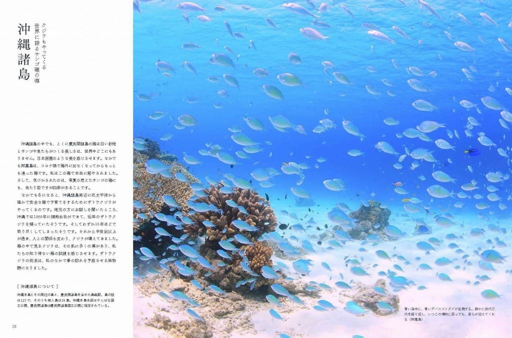 今回、水中写真家の鍵井靖章さんが訪れたのは、南は南西諸島八重山列島から、北は北海道知床半島まで、全26地域の海。その中には、全国的にはあまり知られていない海も多く、改めて南北に長い日本の海の多様性を知ることができる一冊になっています。また、写真の中には、サンゴ礁の「白化現象」や本州や北海道で海藻が消失する「磯焼け」や「赤潮」など、各地の海で起こっているさまざまな海の変化も捉えられています。そんな環境問題も鍵井さんならではの絵作りで表現されています。