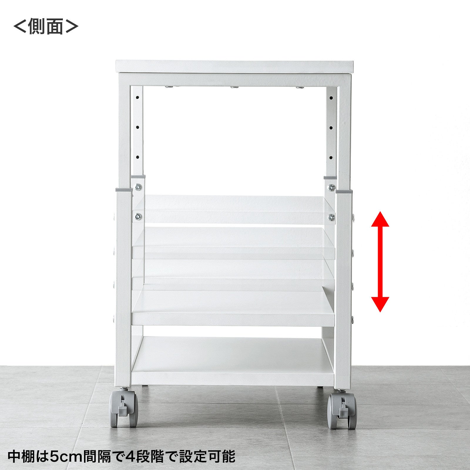 収納物や設置環境に合わせて、ラックの高さを400・450・500・550mmと5cm間隔の4段階で調節できます。