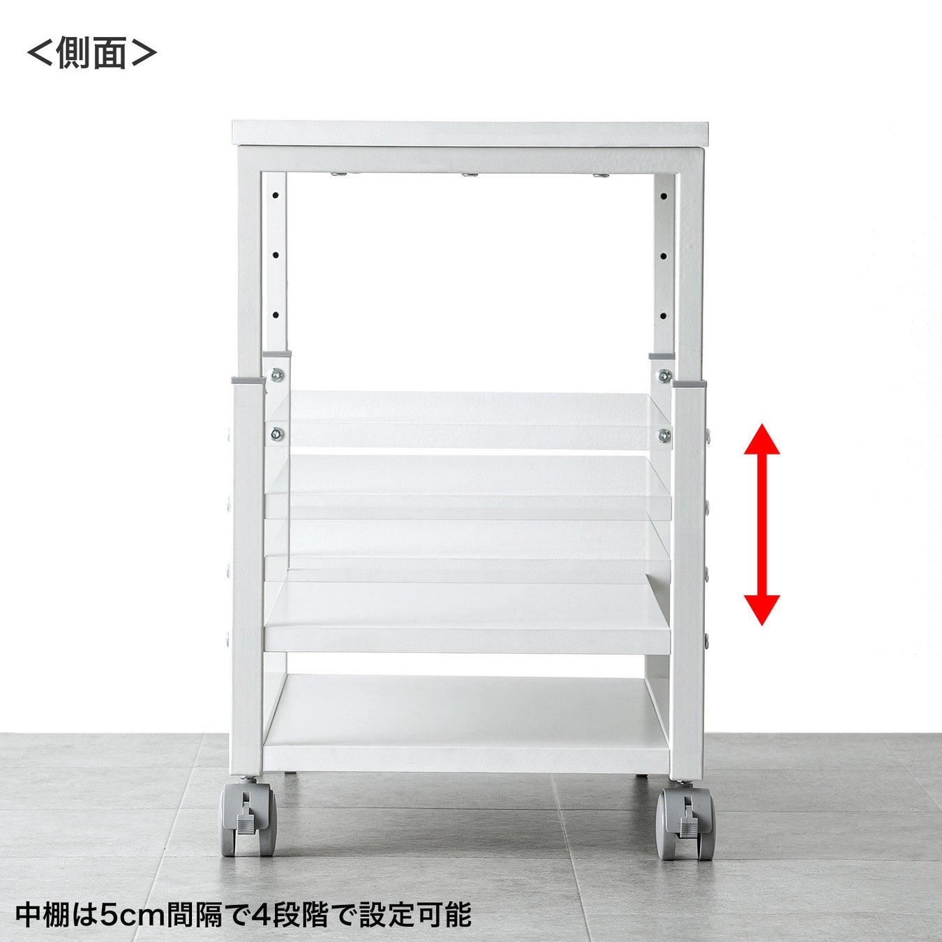 中棚を1枚付属しています。収納する物に合わせて、5cm間隔4段階で設置位置を調整可能です。