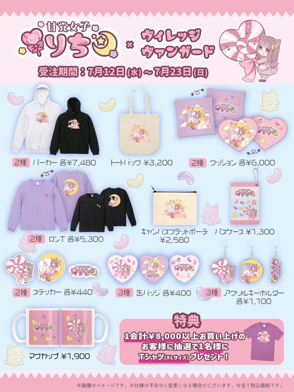 2023年7月12日(水)より、SNSのお菓子紹介などで人気のお菓子クリエイター 【りち】のヴィレッジヴァンガード限定グッズがオンラインストアにて発売決定!!