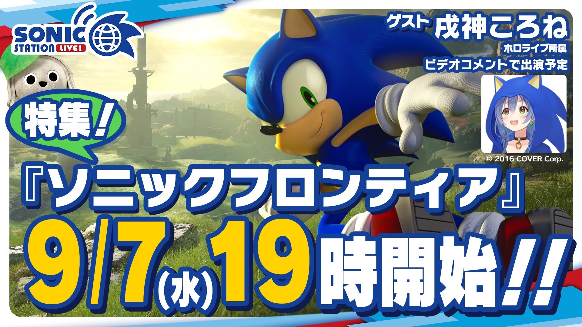 今回の「ソニックステーションLIVE!」では、2022年11月8日(火)に発売が決定した『ソニックフロンティア』の特集を中心に、最新グッズなど盛りだくさんの情報をお届けします。「ソニック」のアンバサダーに就任した戌神ころねさんも、ビデオコメントで出演予定。ソニックとナックルズのふたりもスタジオに来てくれるかも…!?