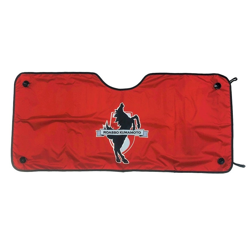 ロアッソ熊本カラーと中央のエンブレムが印象的なクラブオリジナルのカーシェードです。
