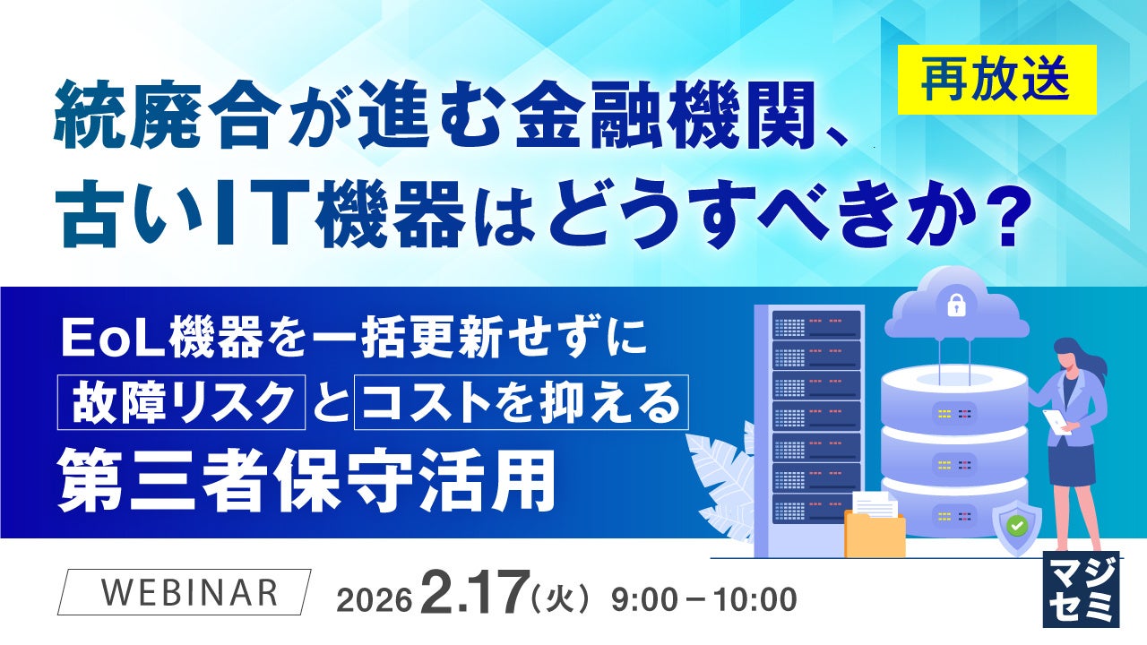 マジセミ株式会社は「【再放送】統廃合が進む金融機関、古いIT機器はどうすべきか?」というテーマのウェビナーを開催します。