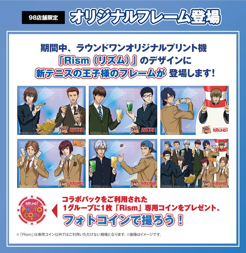 98店舗を対象にラウンドワンオリジナルプリント機「Rism」にて、本コラボ限定のフレームが登場いたします。