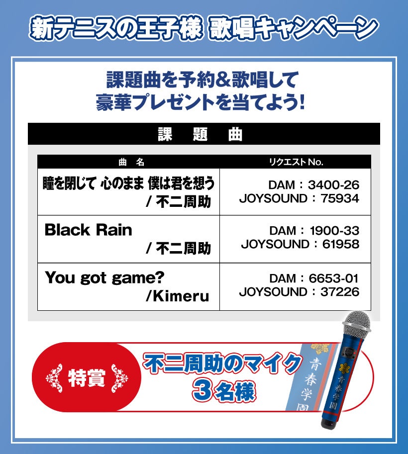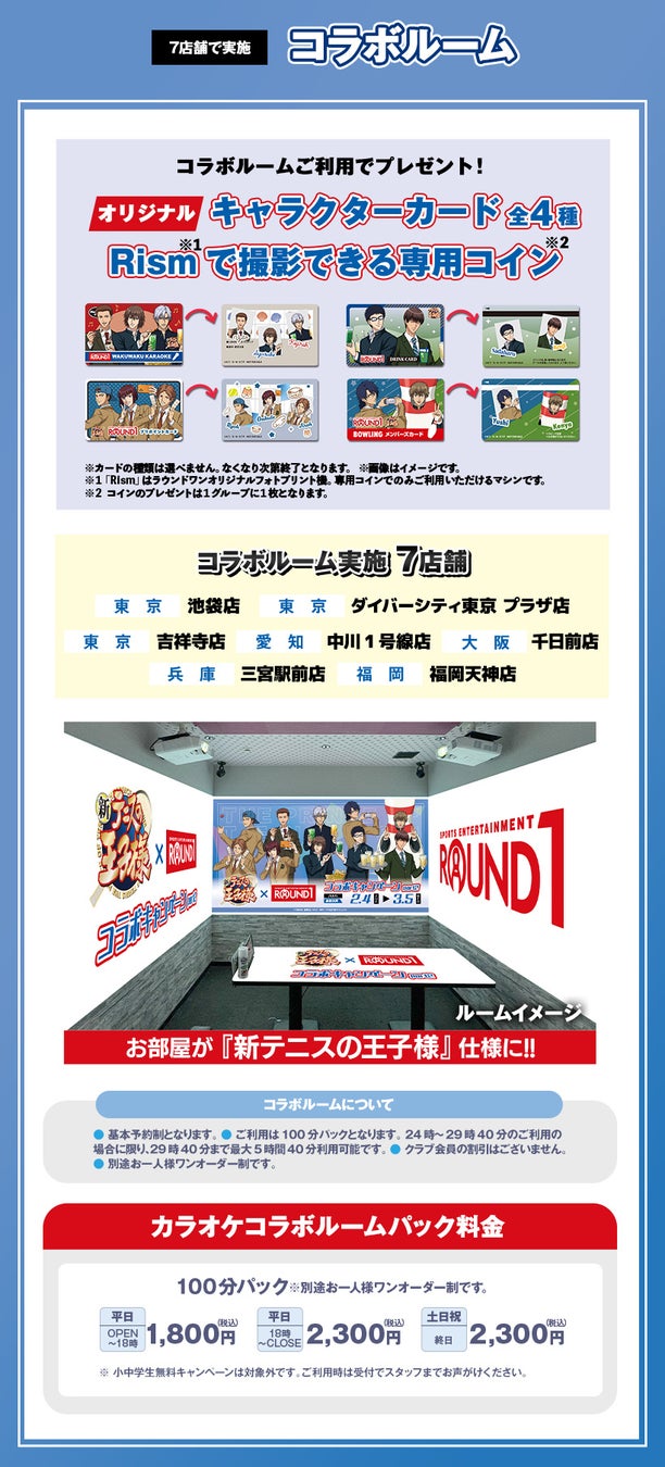 『新テニスの王子様』オリジナルの装飾を施した、限定特典映像が見れるカラオケコラボルームが池袋店・ダイバーシティ東京 プラザ店・吉祥寺店・中川1号線店・千日前店・三宮駅前店・福岡天神店の7店舗に登場!