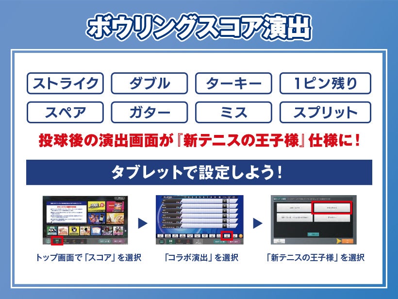 コラボ期間中ボウリングエキサイターでは、投球後の演出画面が『新テニスの王子様』仕様に!