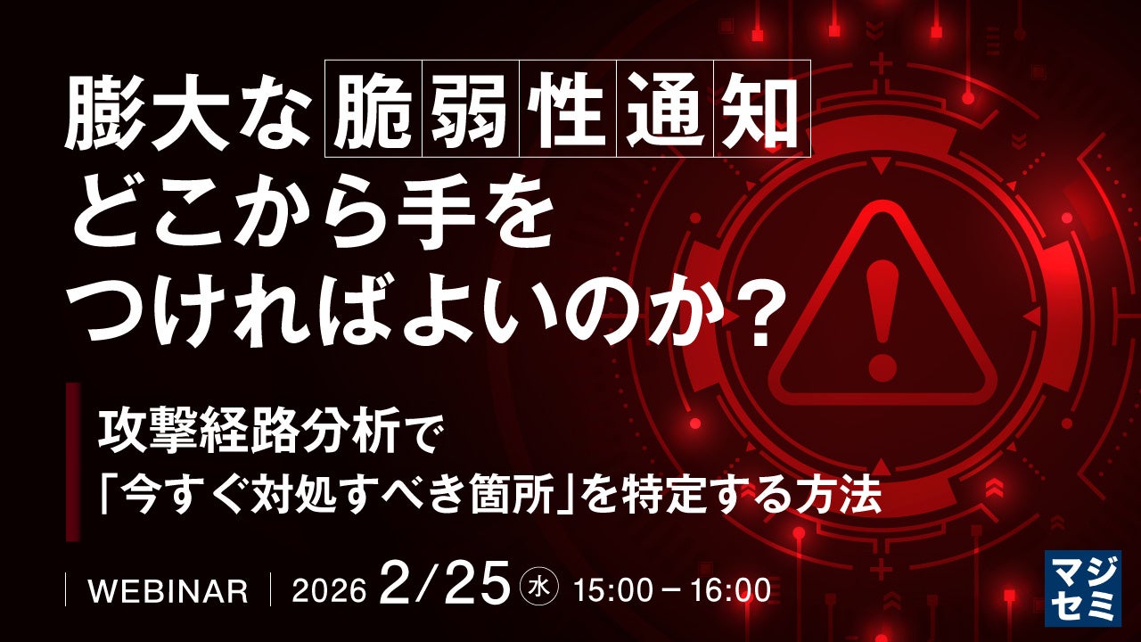 マジセミ株式会社は「膨大な脆弱性通知、どこから手をつければよいのか?」というテーマのウェビナーを開催します。