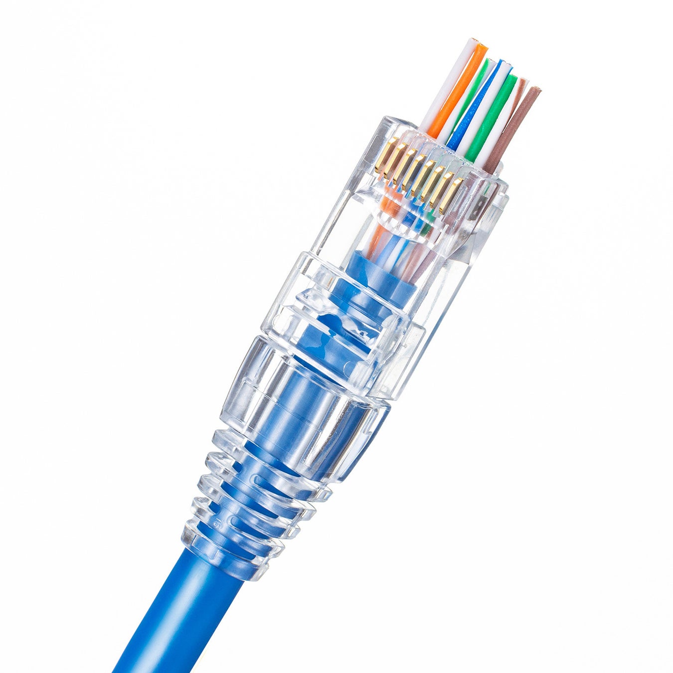 コネクタに通すだけなので、効率的でスピーディーにケーブル加工できるため、短時間で多くのLANケーブルを生成できます。