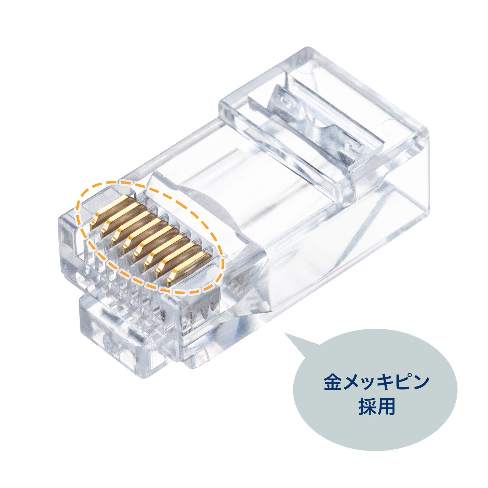 品名:RJ-45コネクタ(カテゴリ6A、貫通型、への字ラッチ、ブーツ付き)