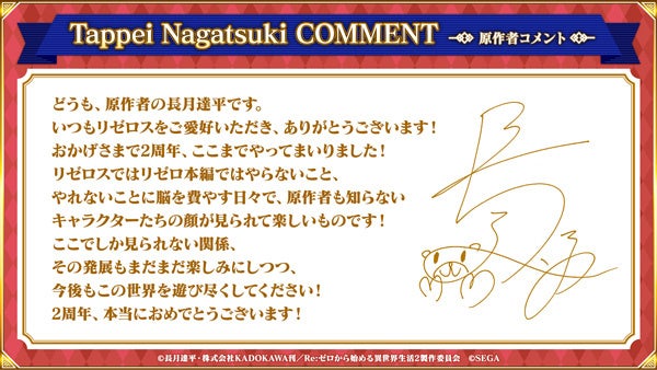 ©長月達平・株式会社KADOKAWA刊/Re:ゼロから始める異世界生活2製作委員会 ©SEGA
