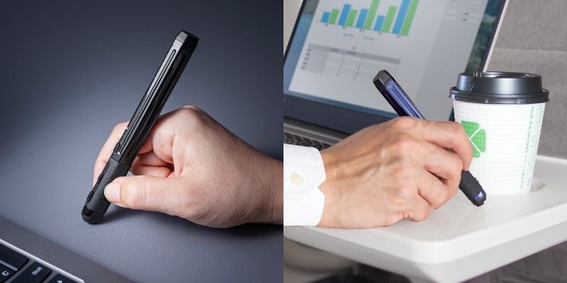 ペンのように握って使えるため、手に馴染みやすく、長時間の使用でも疲れにくいです。ペン先を押し込むことで左クリックが可能で、細かな操作もスムーズに行えます。