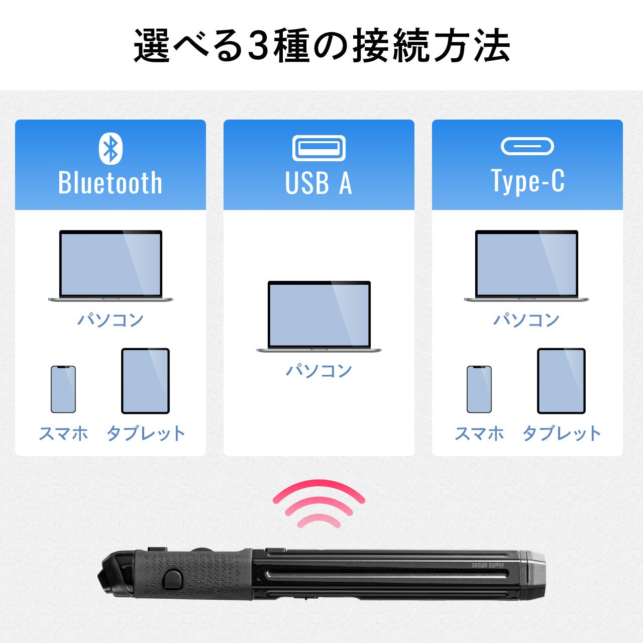 Bluetooth、USB Type-CとType-Aで接続でき、パソコン・スマホ・タブレットに対応