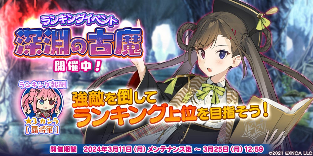 『救世少女 メシアガール おかわり』リニューアルしたランキングイベント「深淵の古魔」後半スタート!カンラ将軍の妹「カンロ」のデコが特効付きで初登場!