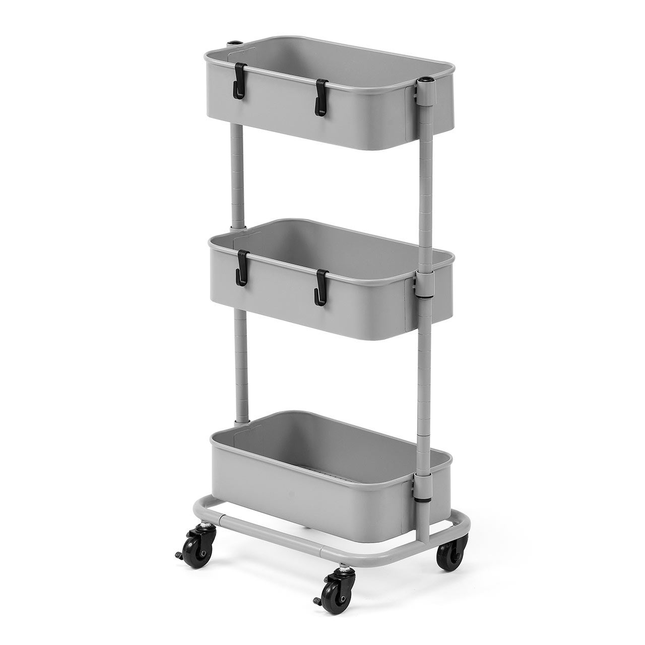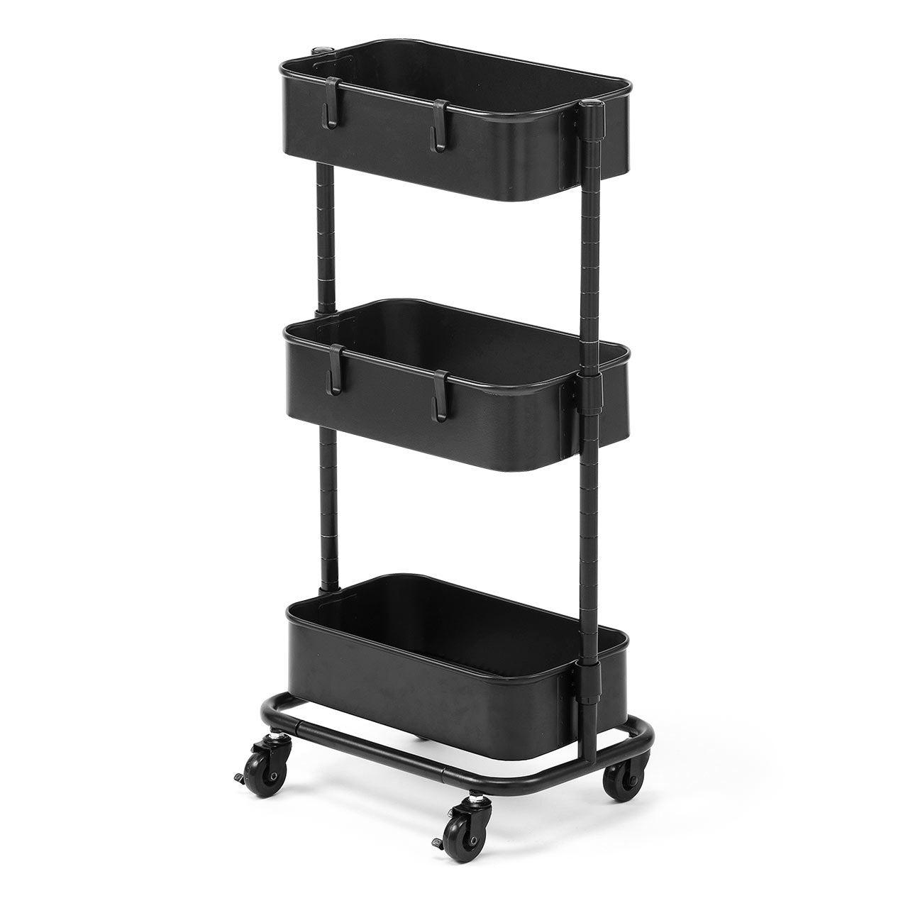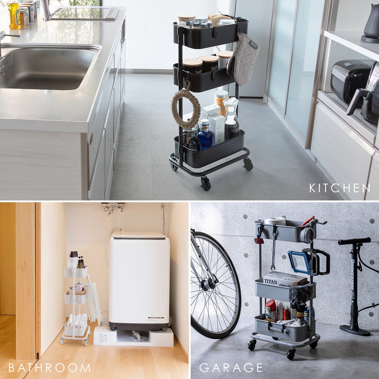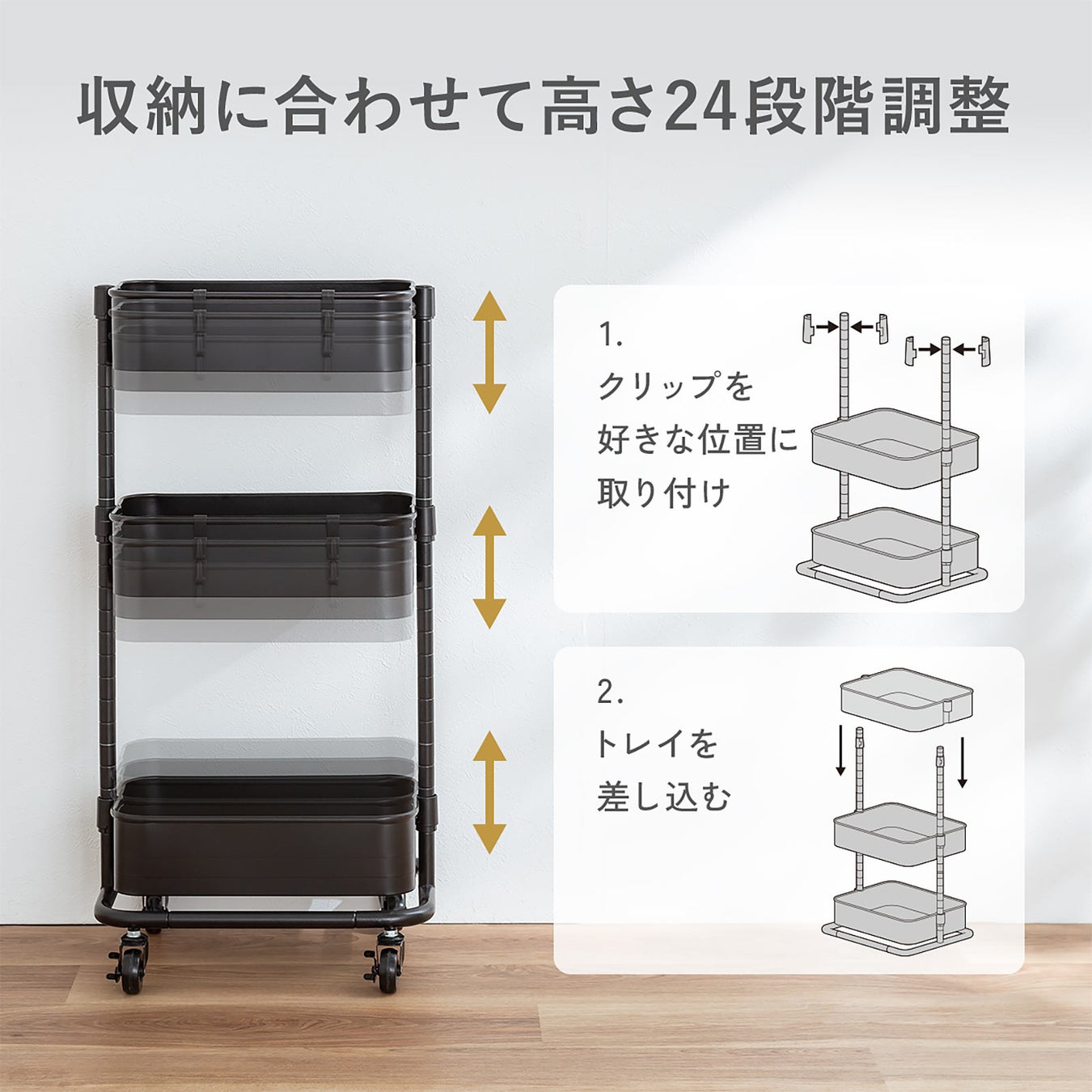 高さを24段階で調整でき、小物の引っかけに便利なフックが付いた幅39cmの3段式キャリーワゴンを5月1日に発売