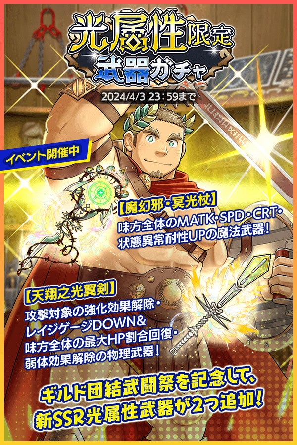 また、武器ガチャに「魔幻邪・冥光杖」「天翔之光翼剣」の2種が追加!イベント報酬の光属性限定武器ガチャチケットでも入手可能ですので、ぜひイベントに挑戦してみてください。