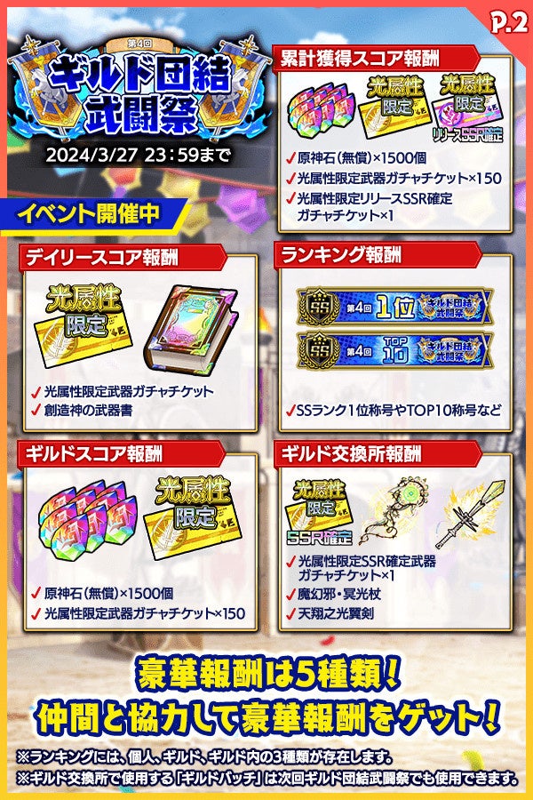 ギルドメンバーと力を合わせて豪華報酬を獲得するイベント「ギルド団結武闘祭」が開催!
