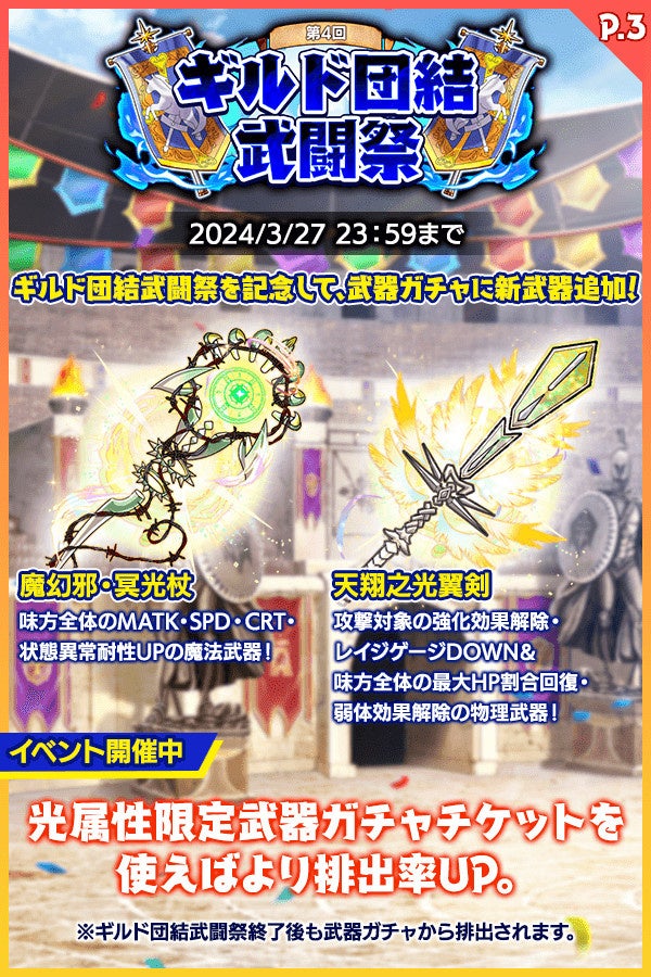 ※光属性限定武器ガチャは3月21日(木)メンテナンス終了後~4月3日(水)23:59まで