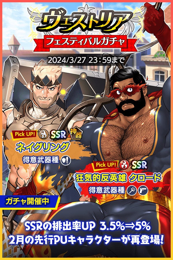 SSRの入手確率が大幅にUPした「ヴェストリアフェスガチャ」が開催!