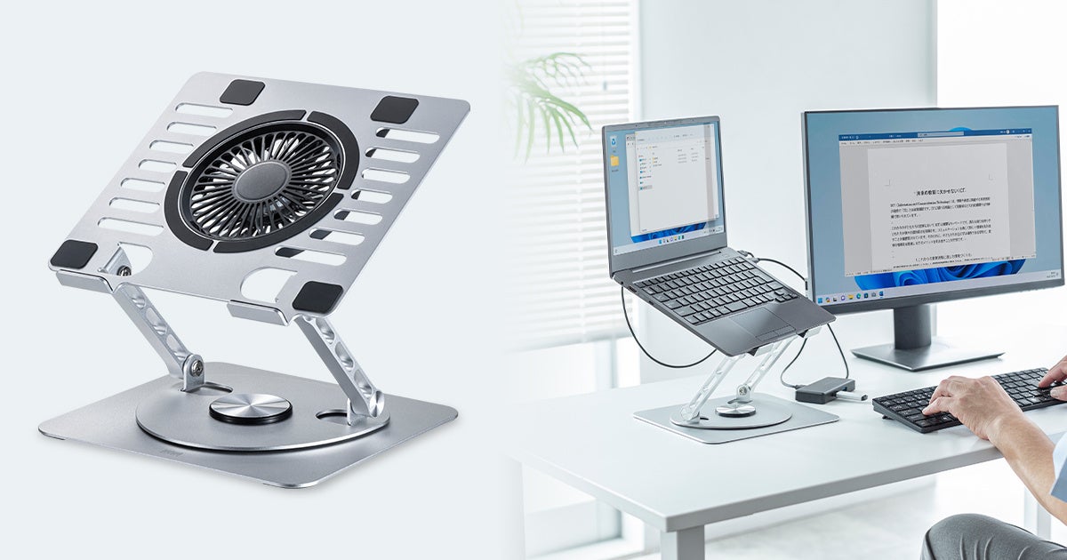 ノートパソコン用のアルミスタンドとクーラーが一体化したスタンド型ノートPCクーラーを発売