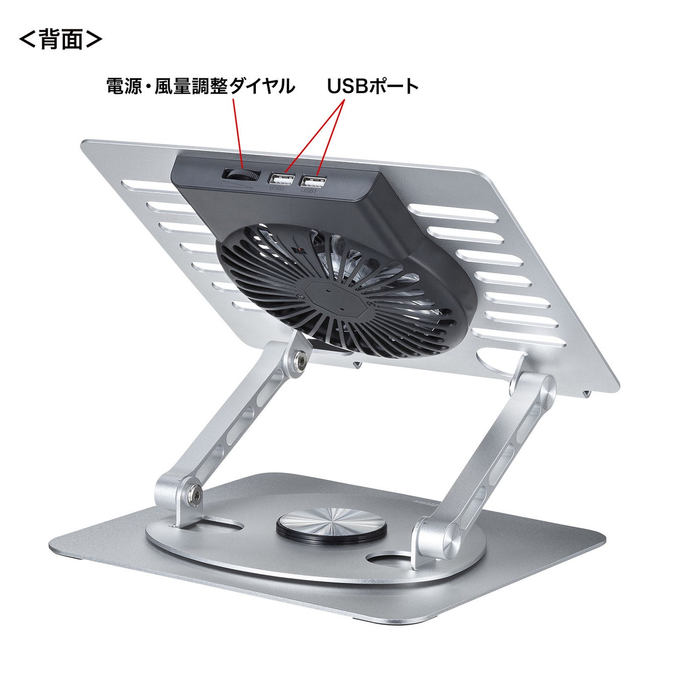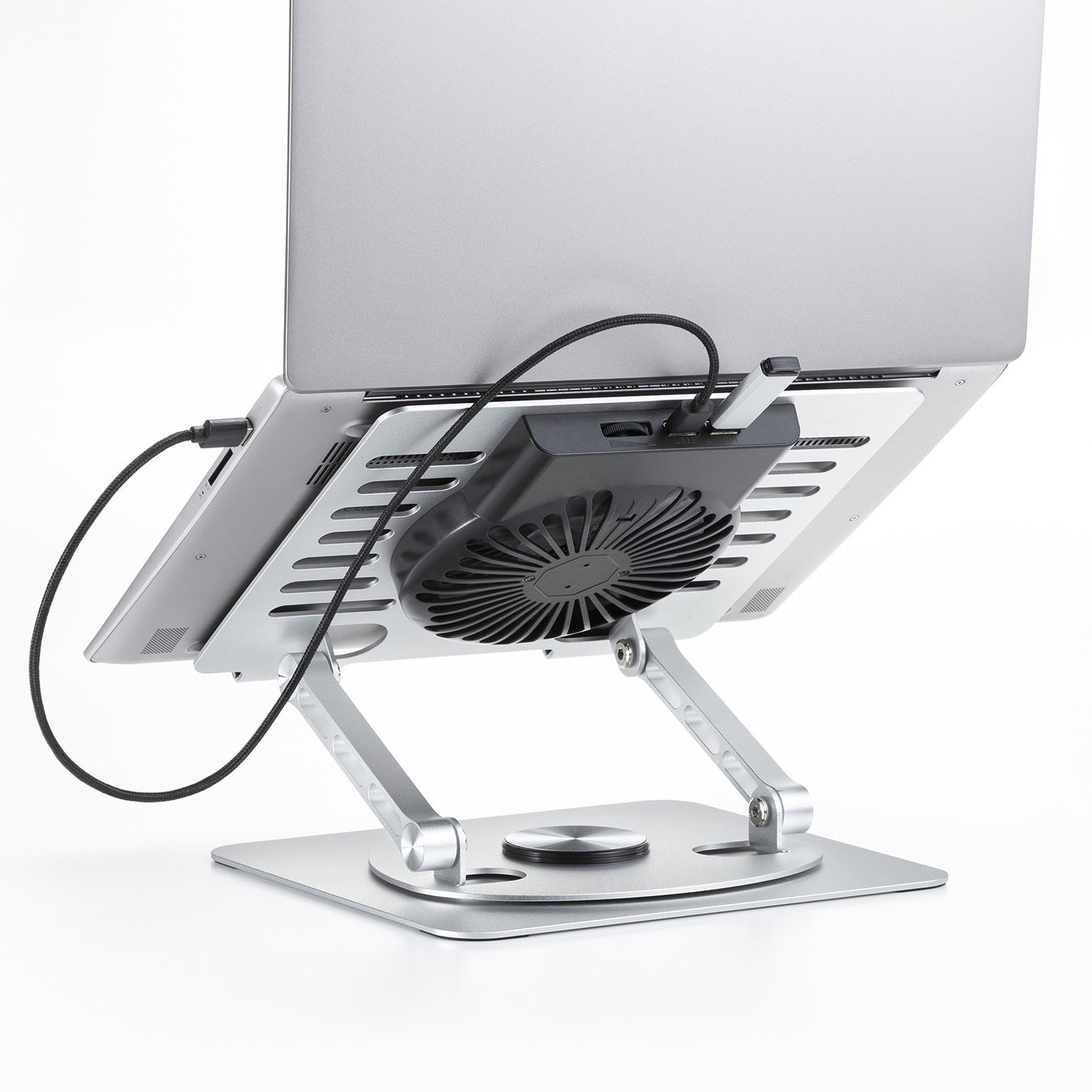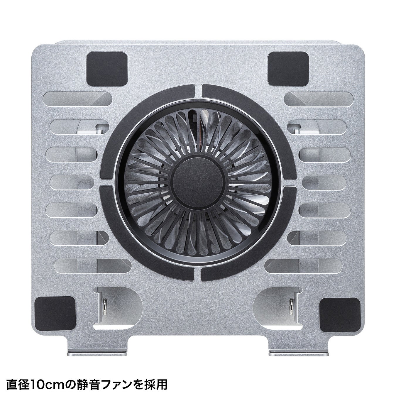 直径10cmのファンと放熱性に優れたアルミ製ボディのダブル効果で、ノートパソコンを冷却し熱暴走を防ぎます。