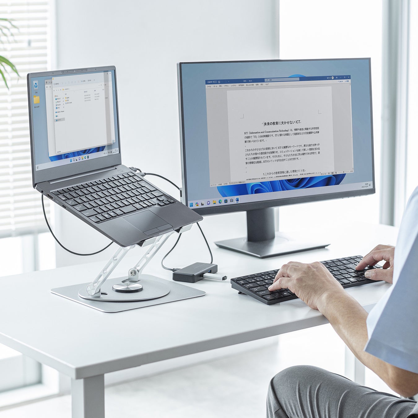iPadやノートパソコンで長時間作業をする方や発熱の大きいゲーミングノートパソコンを使う方、モニターとノートパソコンを使いやすい位置に並べて使用したい方におすすめです。