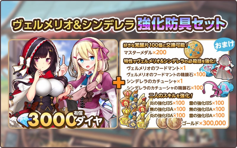 新しく追加されたヴェルメリオとシンデレラの強化に必要な装備やアイテムが揃ったセットです!