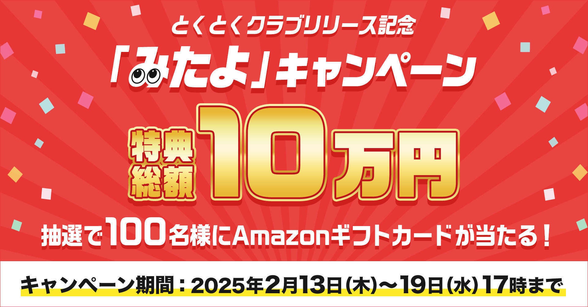 「とくとくクラブ byGMO」のサービスリリースを記念して、Amazonギフトカードが抽選で100名様に当たる『「みたよ」キャンペーン』を実施いたします。