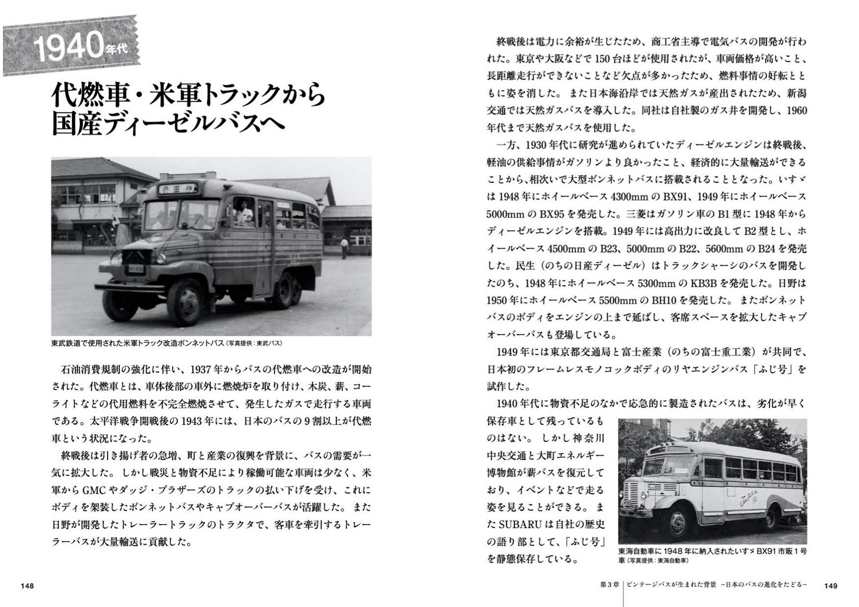 第3章「ビンテージバスが生まれた背景」では、1924年式から2008年式までの車両を取り上げ、国産バスの歴史を振り返ります。
