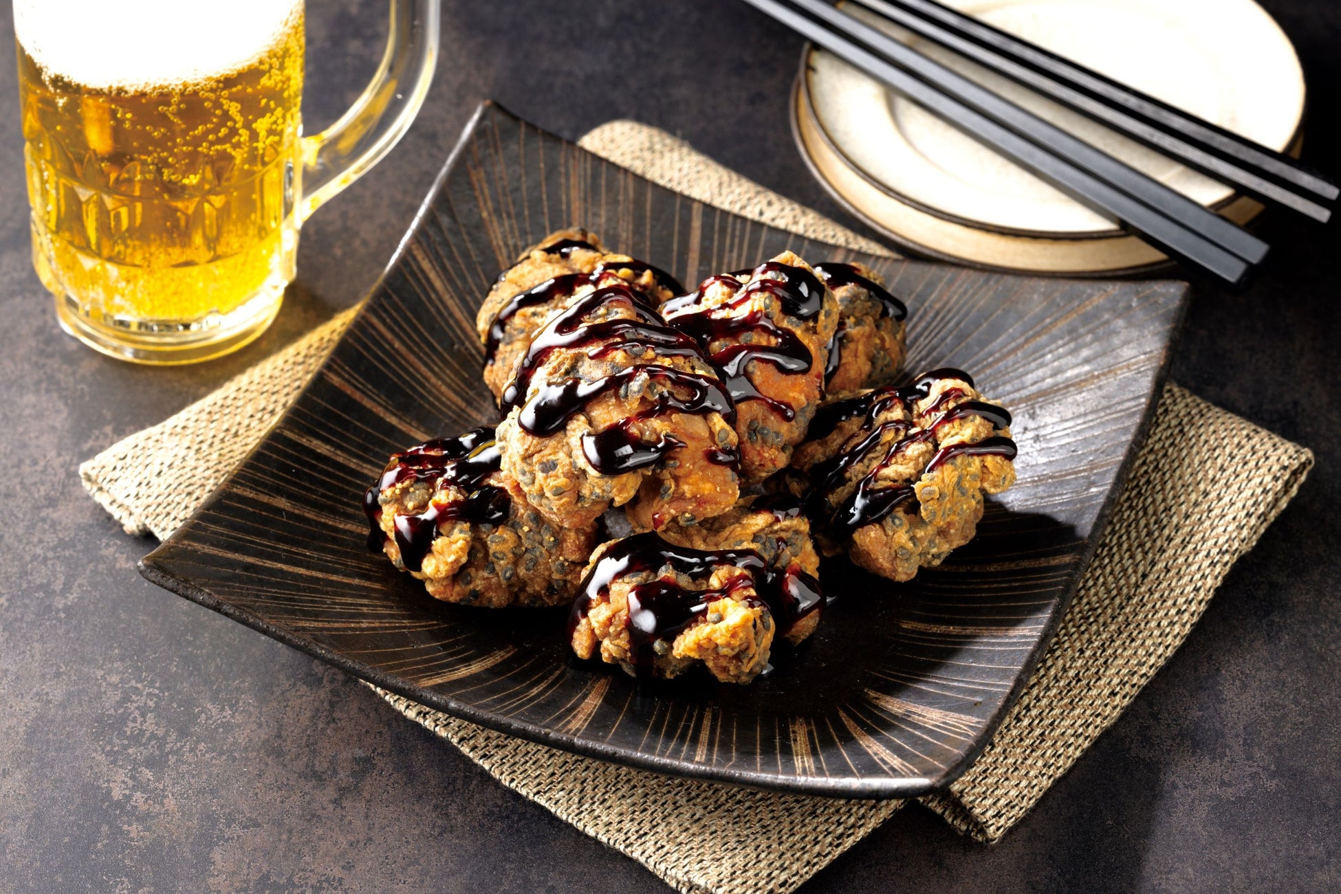 ・ブラック竜田~黒酢&黒みりん入ソース~:ブラック竜田に使用するソースは、黒酢と黒みりんでコクを出し、甘辛で少し酸味のある味に仕立てました。黒ごまと特製ソースの味わいが、ご飯との相性抜群です。