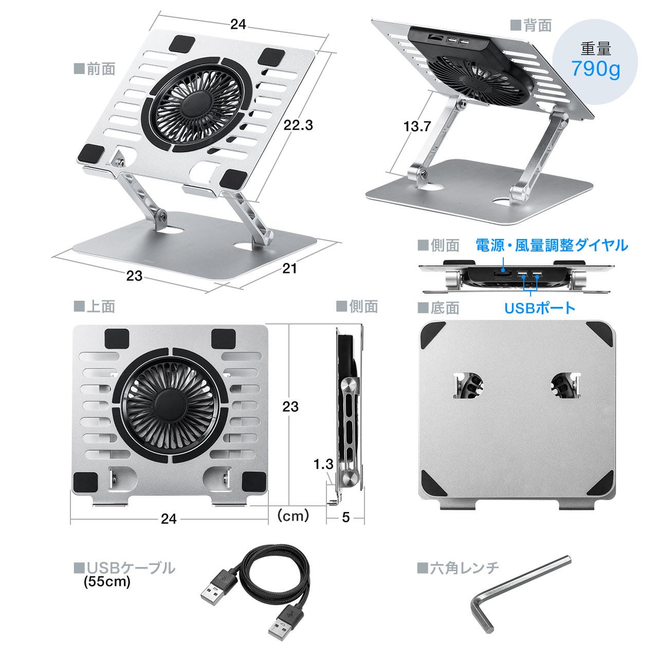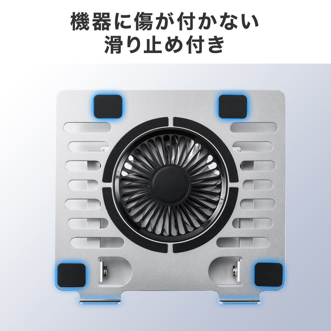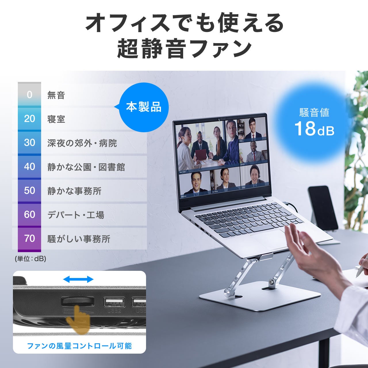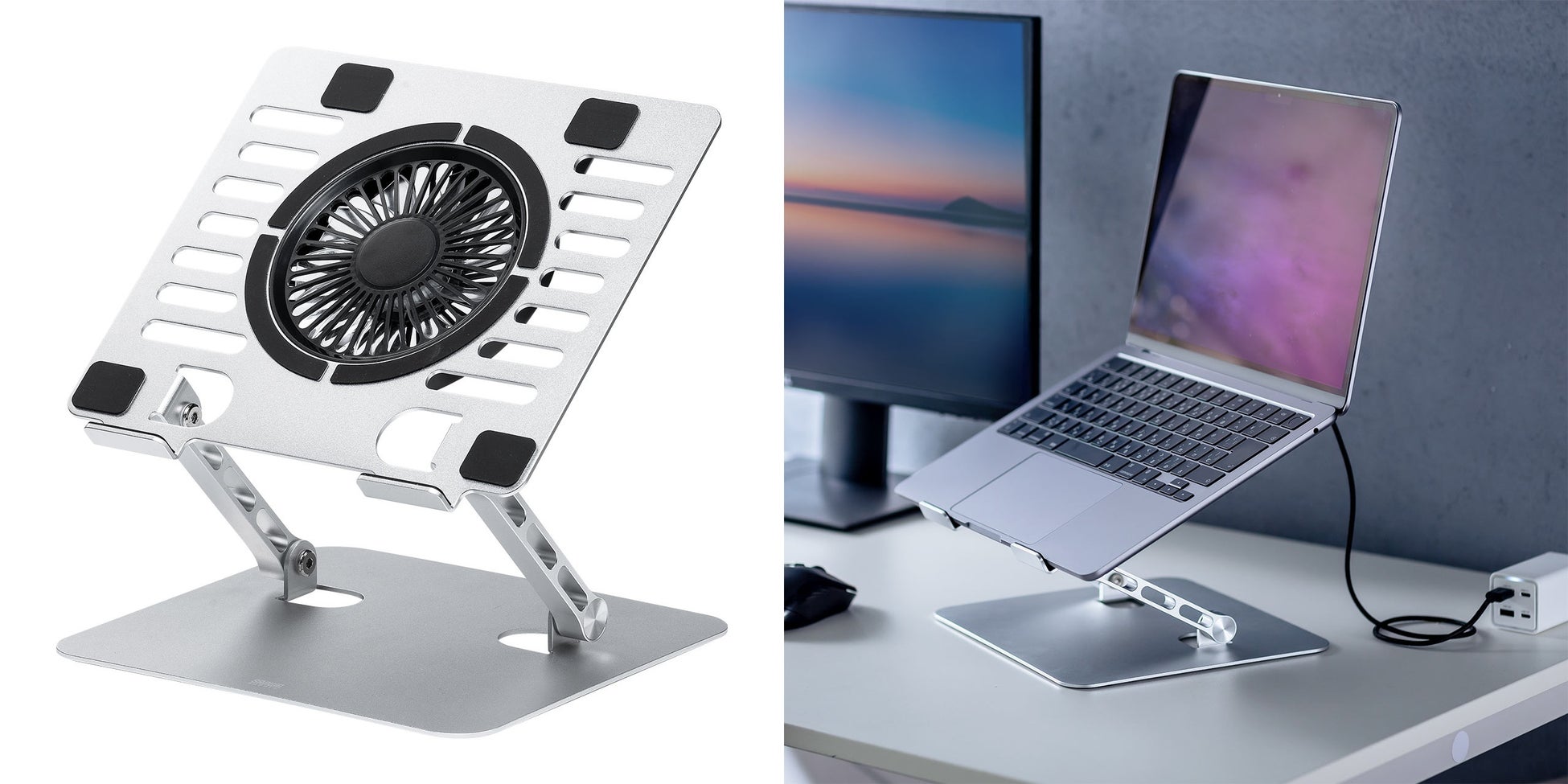 ・ノートパソコンを冷やすだけでなく、高性能スタンドで姿勢よく画面を見られる。