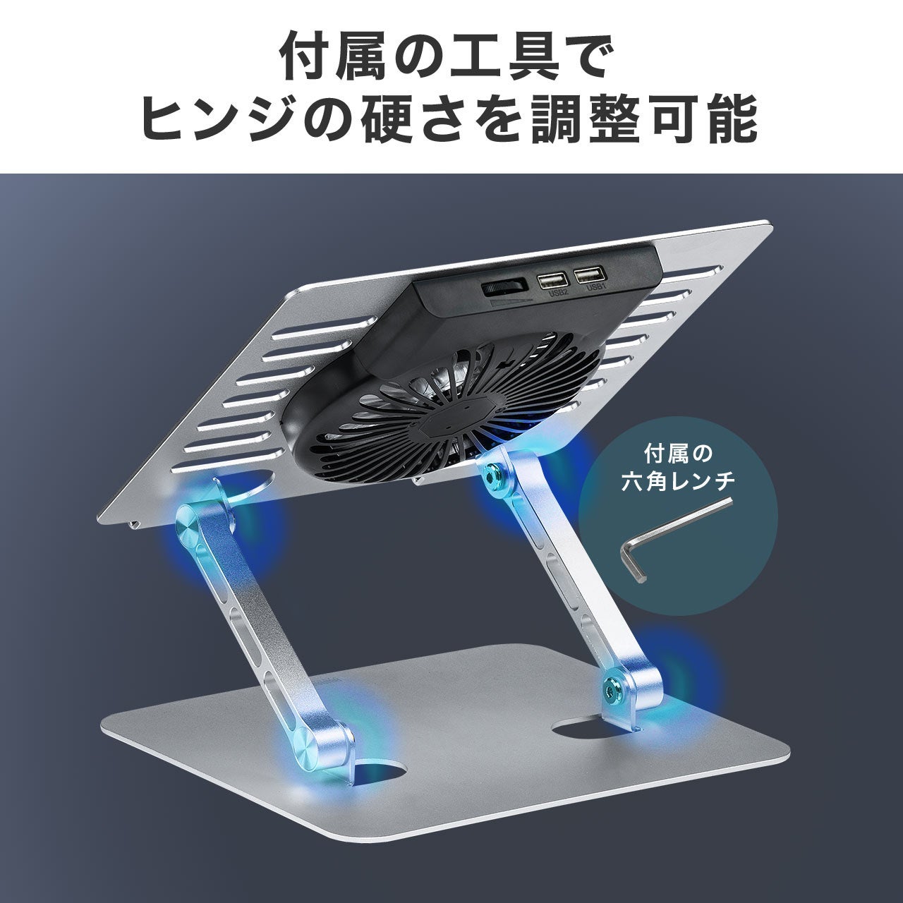 ノートパソコンクーラー スタンド 静音 無段階 角度調節 高さ調整 アルミ製 冷却台 15.6インチ対応 USB給電 大型ファン 卓上 折りたたみ