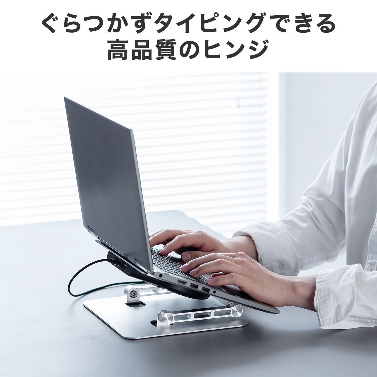 ・アルミ製のスタンドで安定性のある筐体なので、タイピングしてもぐらつかない。