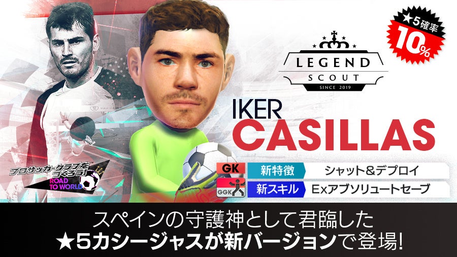 『プロサッカークラブをつくろう! ロード・トゥ・ワールド』スペインリーグのレジェンド「イケル・カシージャス」や、現役のスーパースターが新★5選手として登場する “LEGEND SCOUT”を開催!