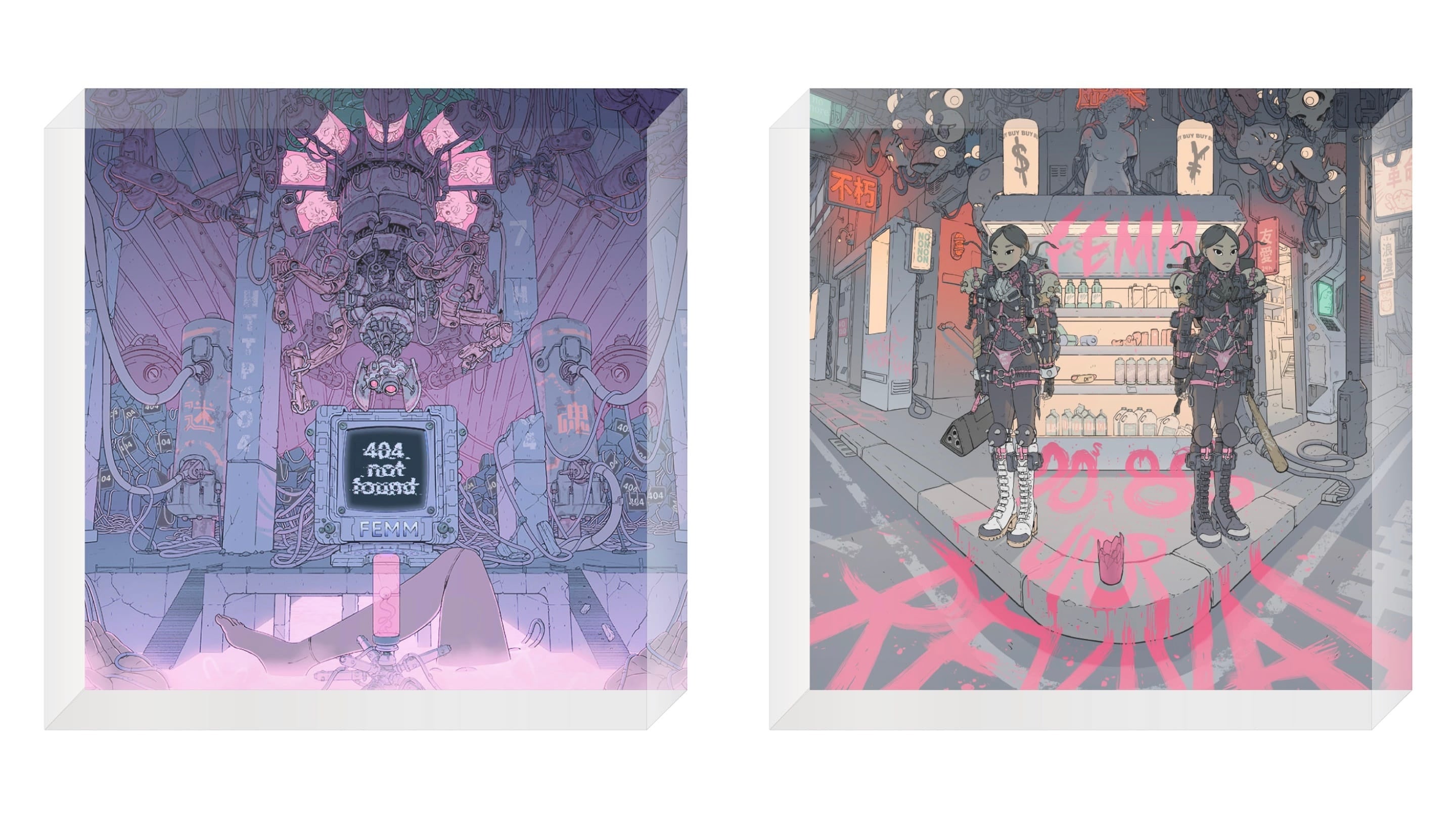 2023年6月29日(木)、RiRiとLuLa、意思を持つ2体のマネキンによるラップ・デュオ【FEMM】とヴィレッジヴァンガードのコラボレーションが実現!これまでのFEMMのアルバムアートワークを使用したグッズを期間限定で受注販売いたします。ロンTやビッグシルエットTといったアパレルアイテムやキーホルダー、ステッカーなどの定番小物だけでなく、ポスター、パネル、ブロックなどのインテリアアイテムまで豊富に展開。