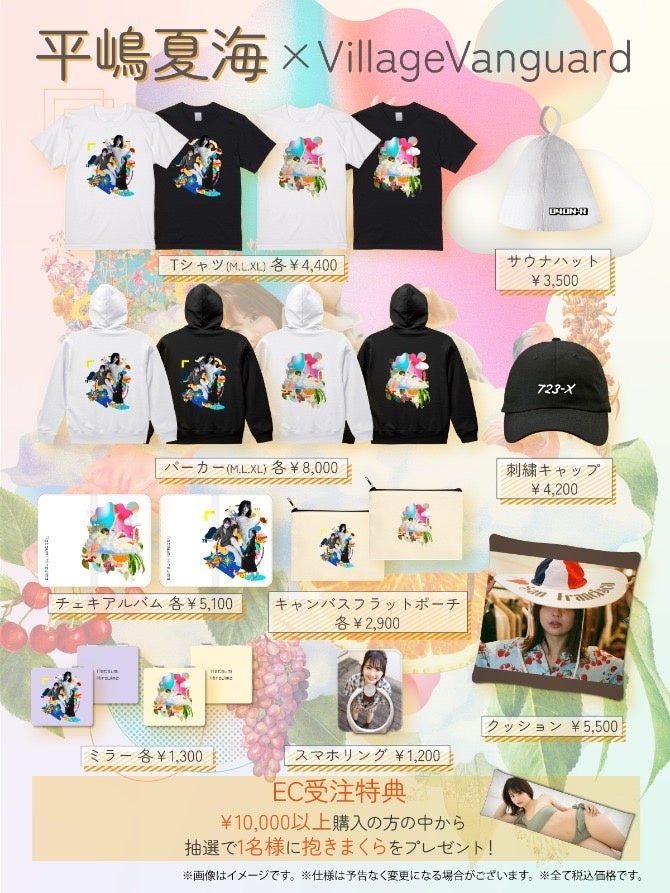 2023年6月29日(木)より、タレント・グラドル・声優など様々な場面で活躍中の【平嶋夏海】のヴィレッジヴァンガード限定グッズがオンラインストアで発売決定!今回のコラボのためのコラージュは、デザイナー【さじきまい】によるもの。オンライン受注の他に、東名阪の3店舗では店頭受注も実施!さらに特典キャンペーンもございます!!スペシャルなアイテムは期間限定受注販売のみの取り扱いとなりますので皆様お見逃しなく!
