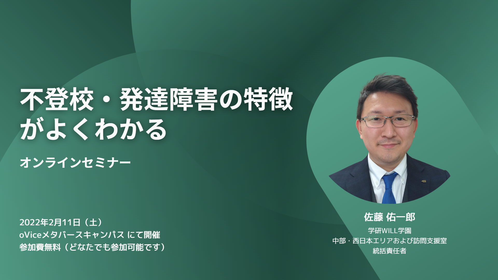 学研WILL学園が送る「不登校・発達障害の特徴がよくわかるオンラインセミナー」 2月11日(土)に oViceメタバースキャンパス にて開催