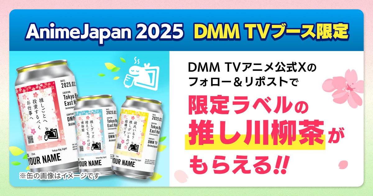本ブースにご来場いただき、DMM TVアニメ公式Xのフォロー&対象投稿のリポストいただいた方に、“推し活あるある川柳”とご自身のお名前を入れたオリジナルラベルのお茶をプレゼントいたします。