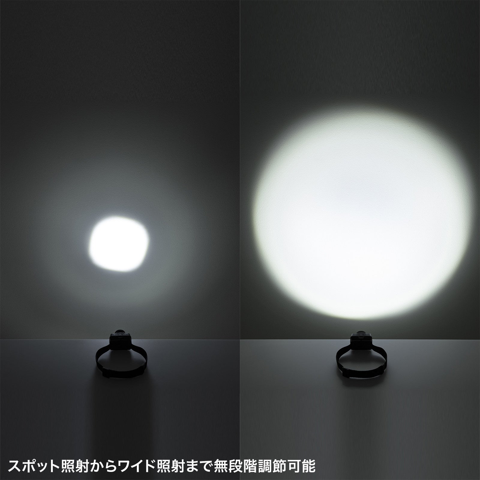 フォーカスリングを回すことで、スポットからワイドまで照射範囲を無段階に調節できます。