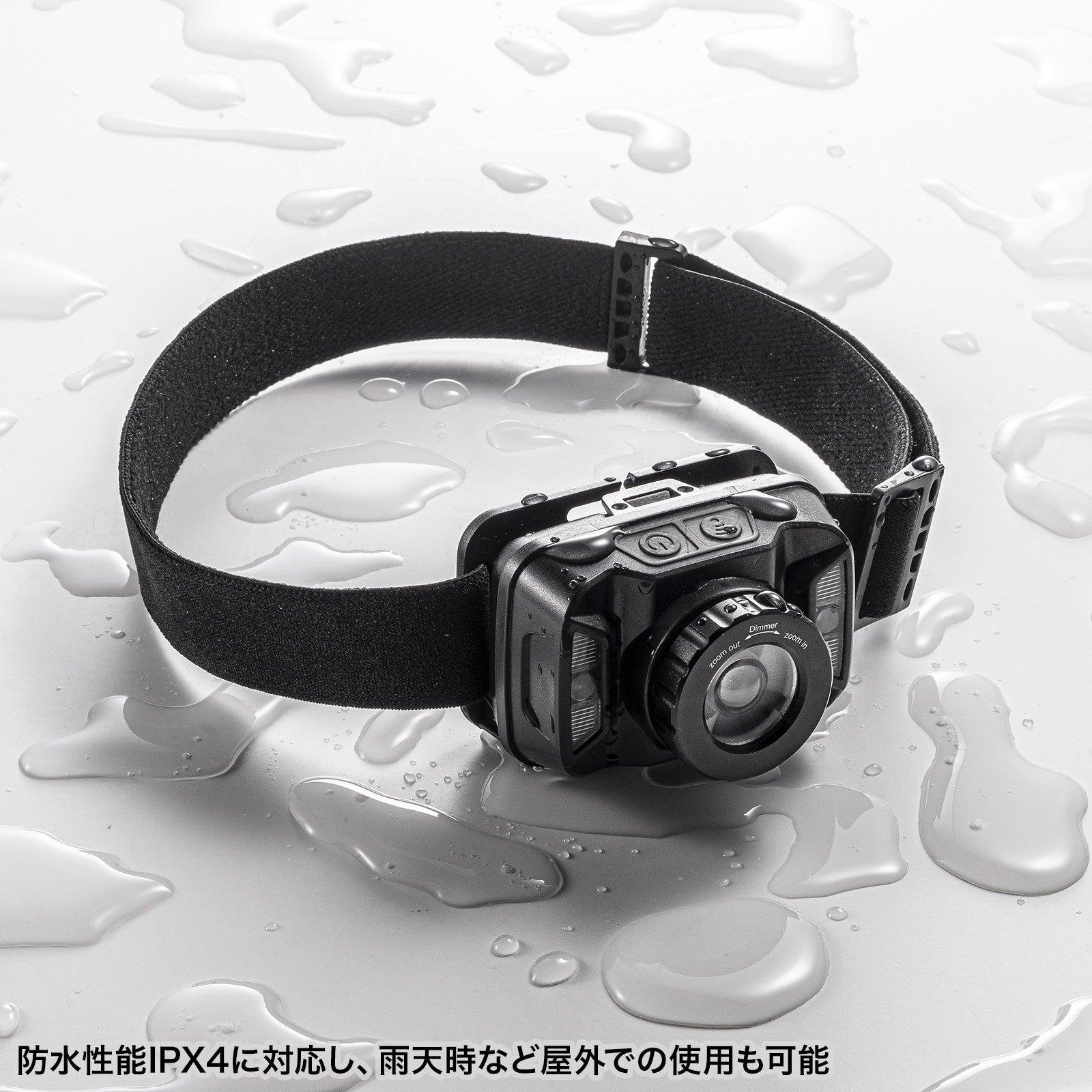 頭に装着するタイプなので視界方向を確実に照射、点検作業やアウトドアなど、手元を明るく確認したいときにおすすめです。両手が自由に使えるので、作業がしやすく便利です。バンドの長さを調節できるアジャスター付きで、ヘルメットや帽子の上からでも装着できます。