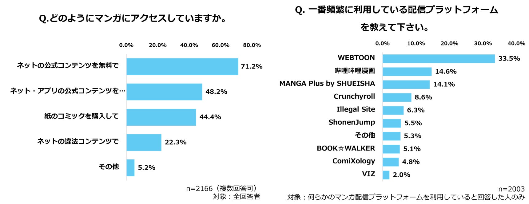 ・マンガへのアクセス方法は、ネットの公式コンテンツを無料で利用しているユーザー(71.2%)が高い水準をマーク。