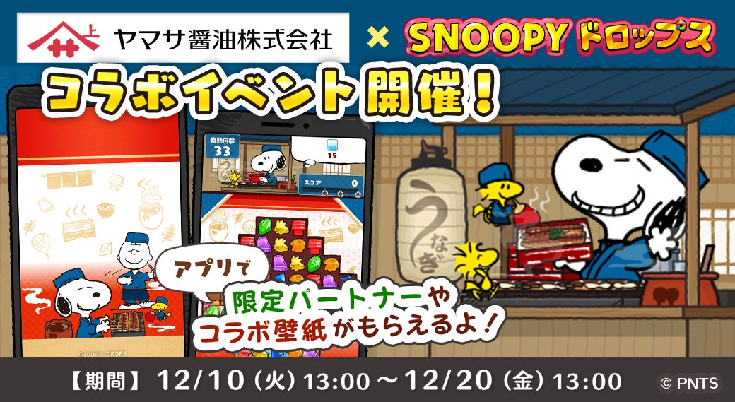 爽快パズルゲーム『スヌーピードロップス』にて、「ヤマサ醤油」との、スペシャルコラボを今年も開催!