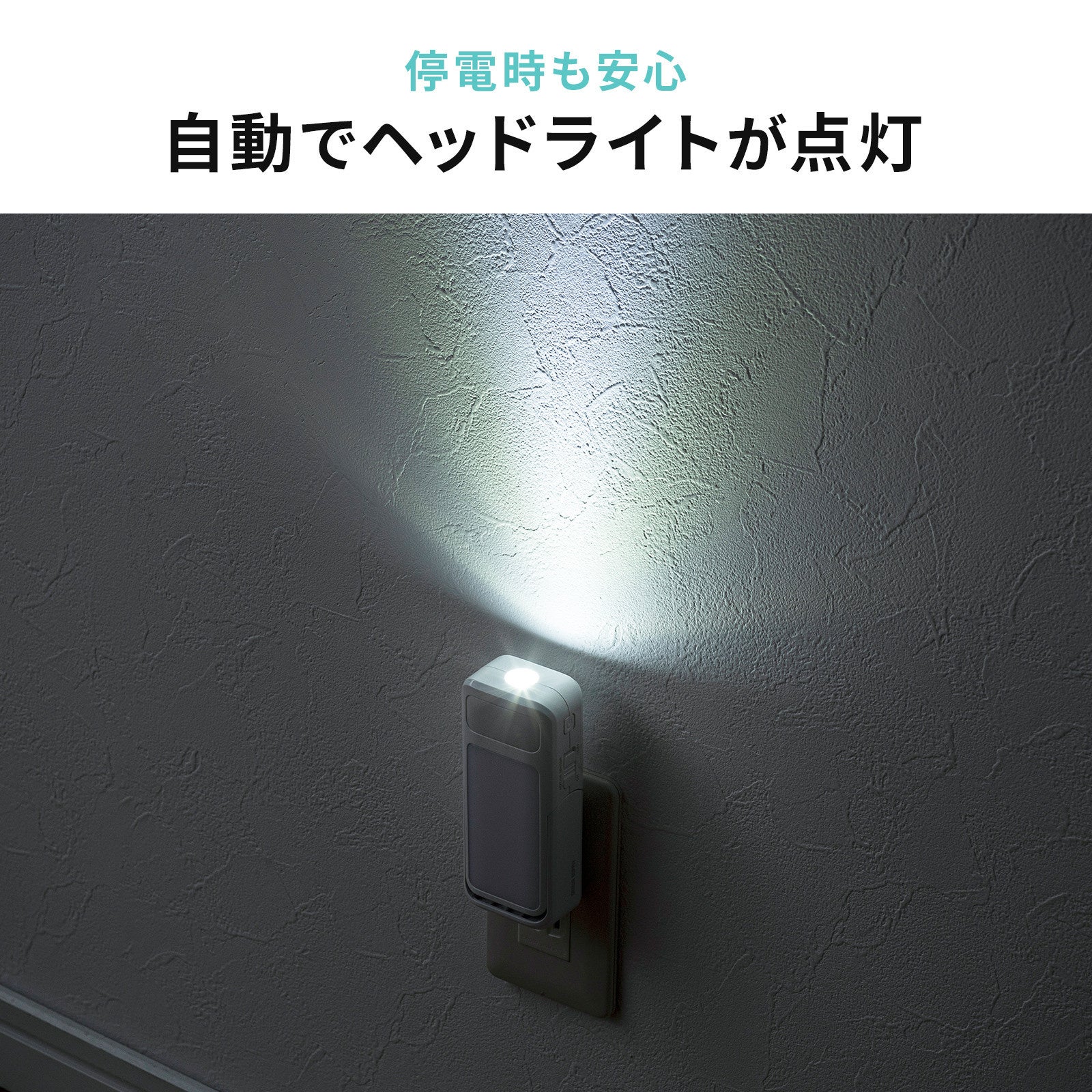 非常時やちょっと照らしたいときにはコンセントから外すとヘッドライトが自動点灯します。