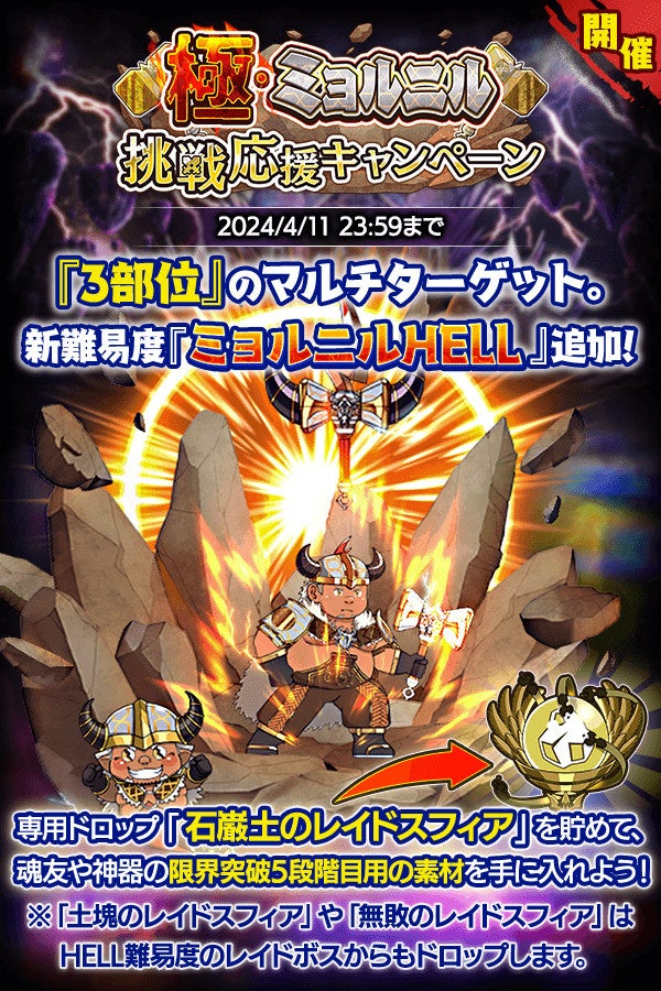 土属性レイドボス「ミョルニル」に新たな難易度「HELL」が登場!